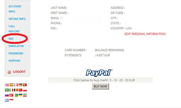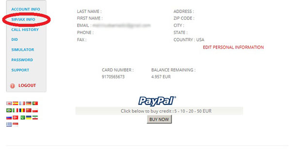 - Once you have logged into your account, click SIP/IAX INFO" on the left hand side of the page.