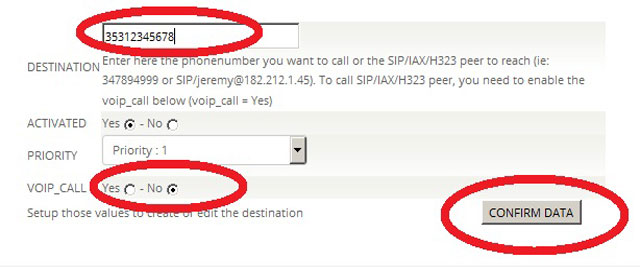 Click "Confirm Data" once you are finished. Now, try ringing the number which you have just edited. You should find that the call is diverted to whichever number you entered in the "Destination" field.