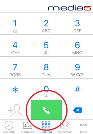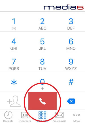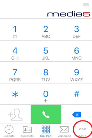 - In Media5, tap "More" in the bottom right-hand corner of the dial pad screen.